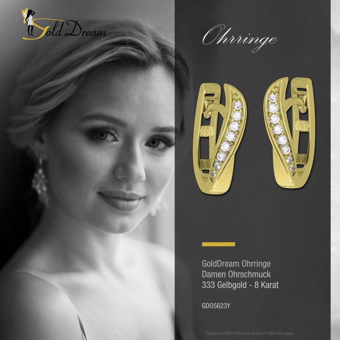 Ohrschmuck von GoldDream Goldschmuck ist hochwertiger und moderner goldener Echtschmuck. Somit bieten die Ohrringe für jede Frau angenehmen Tragekomfort.