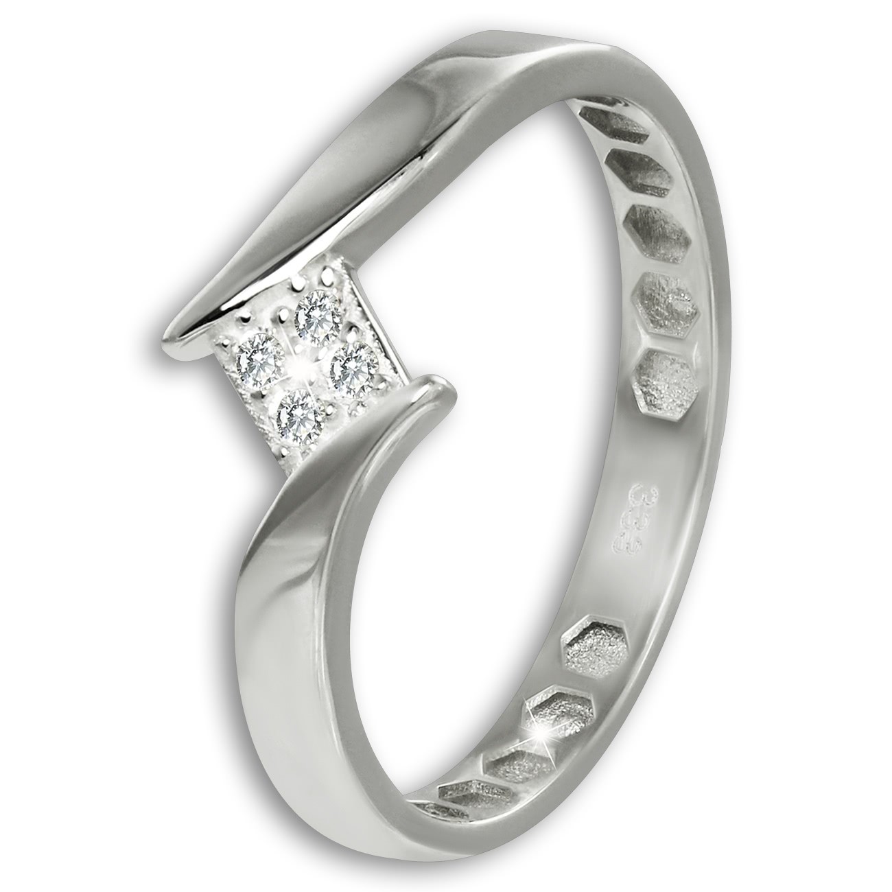 Ein moderner Goldring - Square - aus unserer einzigartigen GoldDream Echtschmuck Kollektion. Der Ring ist mit einem Quadrat aus weißen Zirkonias verziert und aus anlaufgeschütztem 333er Weißgold (8-Karat). Er hat eine Größe von 54mm Umfang und einen Innendurchmesser von 17,2mm. Es gibt den Goldring auch in den Größen 56, 58 und 60.