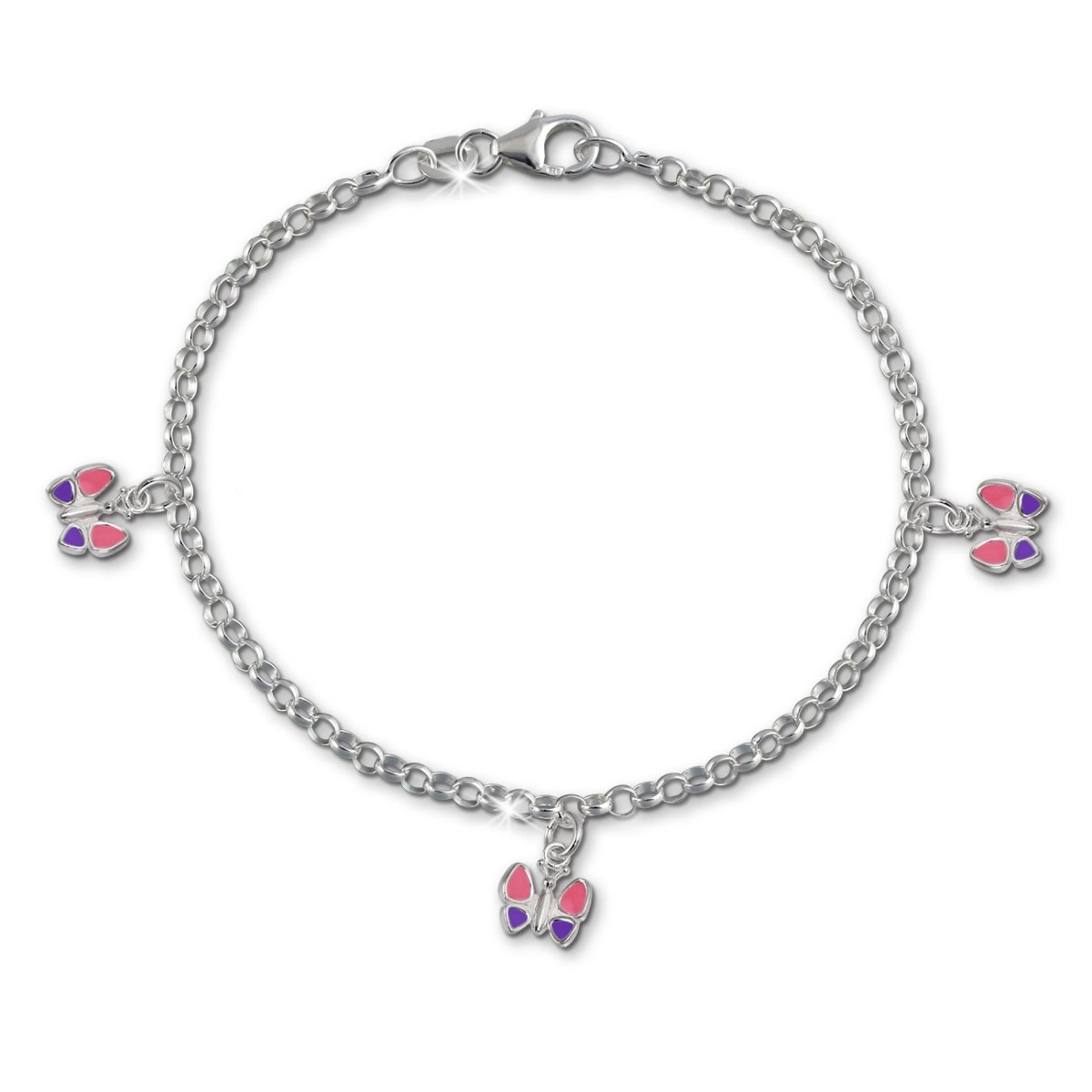 Kinder Armband 15,5cm mit 3 Schmetterlingen rosa/lila aus unserer einzigartigen SilberDream Kollektion aus anlaufgeschütztem 925 Sterling Silber mit Karabinerverschluss.