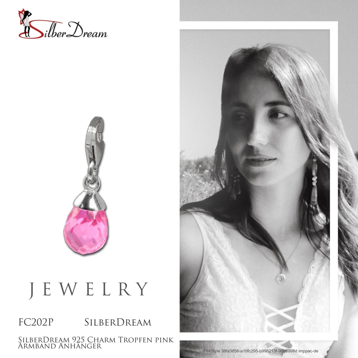Charm Bettelarmband Anhänger aus anlaufgeschütztem 925 Sterling Silber - Tropfen pink - geschliffener Zirkonia - .