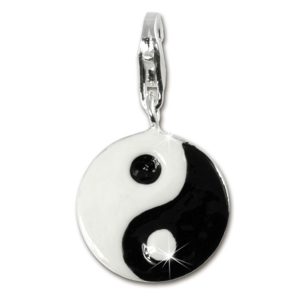 Charm Bettelarmband Anhänger aus anlaufgeschütztem 925 Sterling Silber - YinYang mit Emaille-Inlay - .