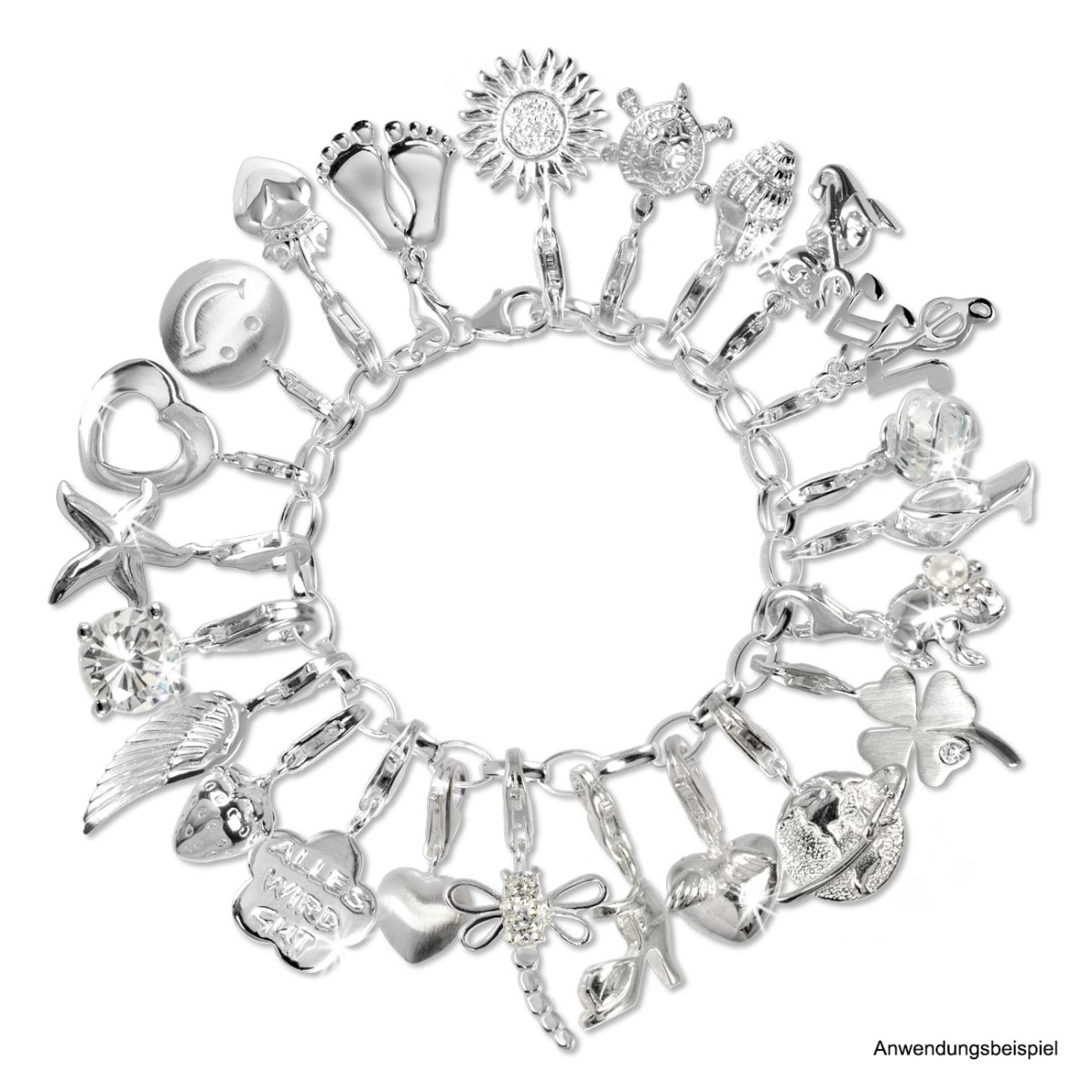 Sie können sich Ihr Armband selbst gestalten und Ihre ganz persönliche Zusammenstellung finden. Unsere Charms können aber auch mit Schmuckstücken oder Charms anderer Hersteller kombiniert werden oder an Armbändern anderer Hersteller getragen werden.