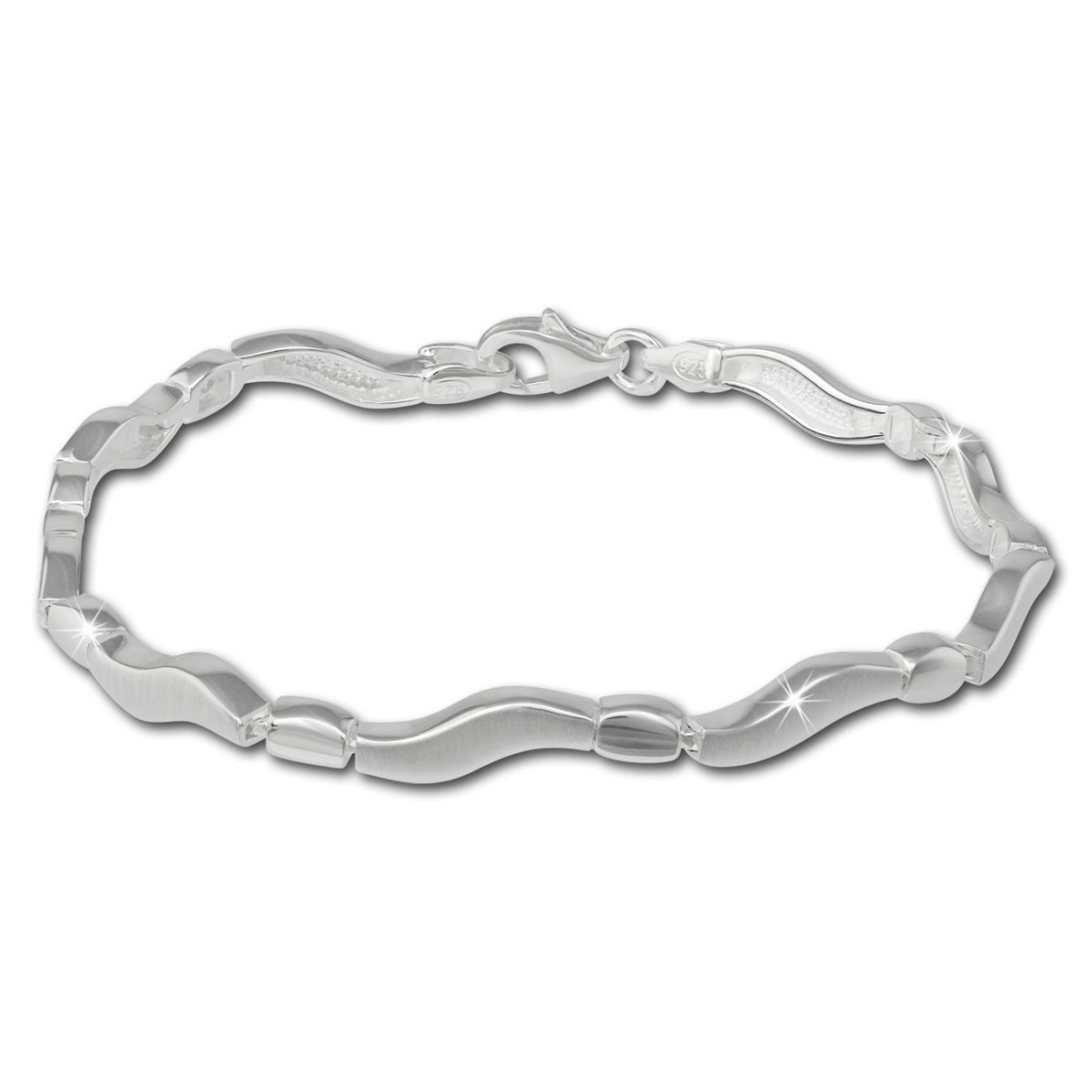 Ein modernes Armband Welle aus matten und glänzenden Gliedern in der Länge 19cm mit Karabinerverschluss. Das Armband ist aus unserer einzigartigen SilberDream Schmuck Kollektion aus anlaufgeschütztem 925 Sterling Silber.