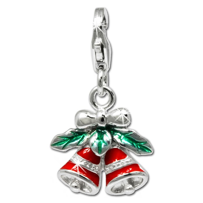 Charm Anhänger für Bettelarmband oder Ketten aus anlaufgeschütztem 925 Sterling Silber - Weihnachtsglocken rot - aus unserer SilberDream Schmuck Kollektion.