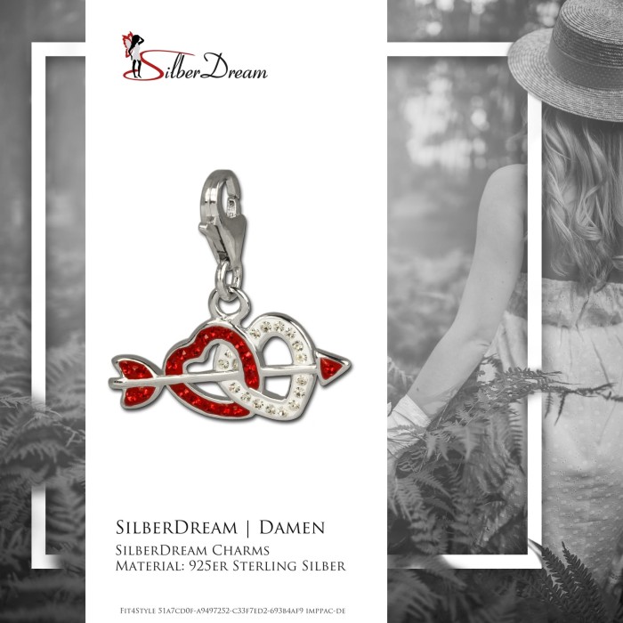 - Doppelherz rot/weiß - ein Glitzer Charm aus 2 Herzen und Pfeil mit tschechischen Kristallen und aus 925 Sterling Silber für Bettelarmband oder Halskette. Der funkelnde Anhänger passt auch an Armbänder anderer Hersteller oder kann als Kettenanhänger oder Anhänger für ein Handy genutzt werden. Die Zirkonia Kristalle erstrahlen auf dem Charm in den Farben rot und weiß.
