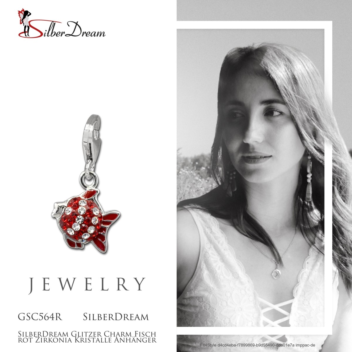 - Kurzbeschreibung: SilberDream Glitzer Charm Fisch rot
