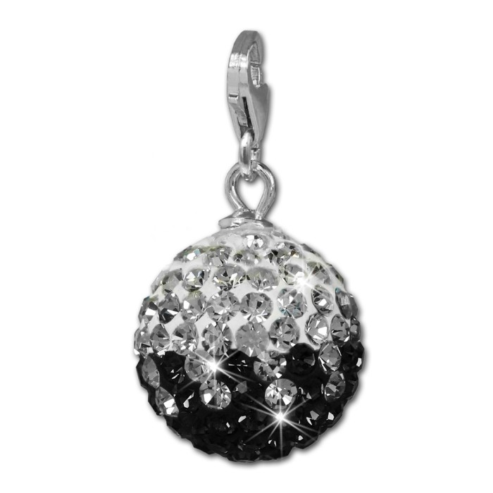 Ein Charm mit Zirkonias Kristallen - Kugel schwarz/weiß im ICE Farbverlauf - aus 925 Sterling Silber für Bettelarmband oder Halskette. Der Charms Anhänger passt auch an Armbänder anderer Hersteller oder kann als Kettenanhänger oder Anhänger für ein Handy genutzt werden. Die Zirkonias erstrahlen auf dem Charm im Ice Farbverlauf.