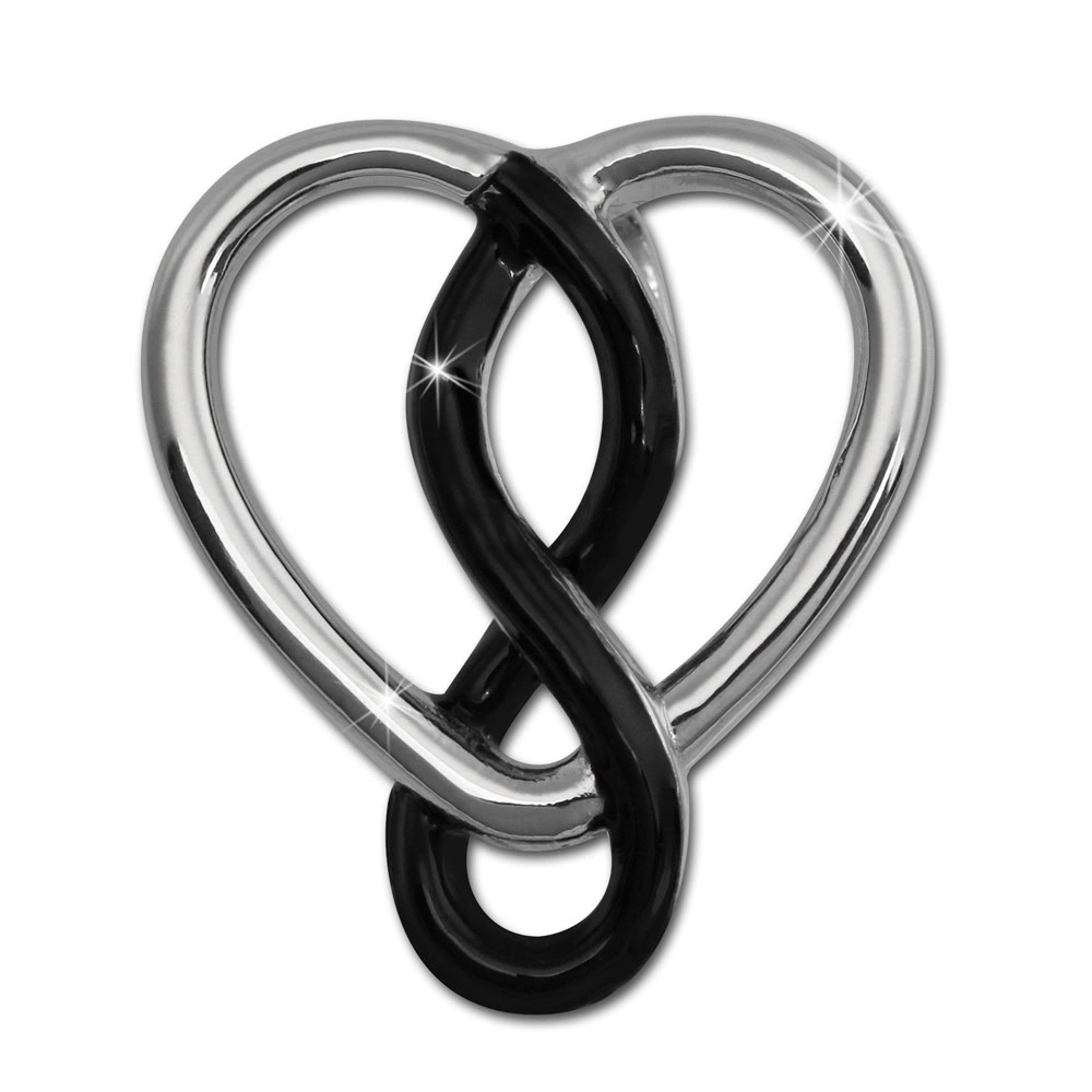 Ein Kettenanhänger Herz unendlich und teilweise geschwärzt, Damen Anhänger aus der SilberDream Schmuck Kollektion aus anlaufgeschütztem 925 Sterling Silber. Der zweifarbige Anhänger ist zum Teil mit schwarzen Emaille Lack überzogen. Der Ketten-Anhänger hat eine Größe von ca. 2cm und eine Öse für Ketten bis 3mm Durchmesser.