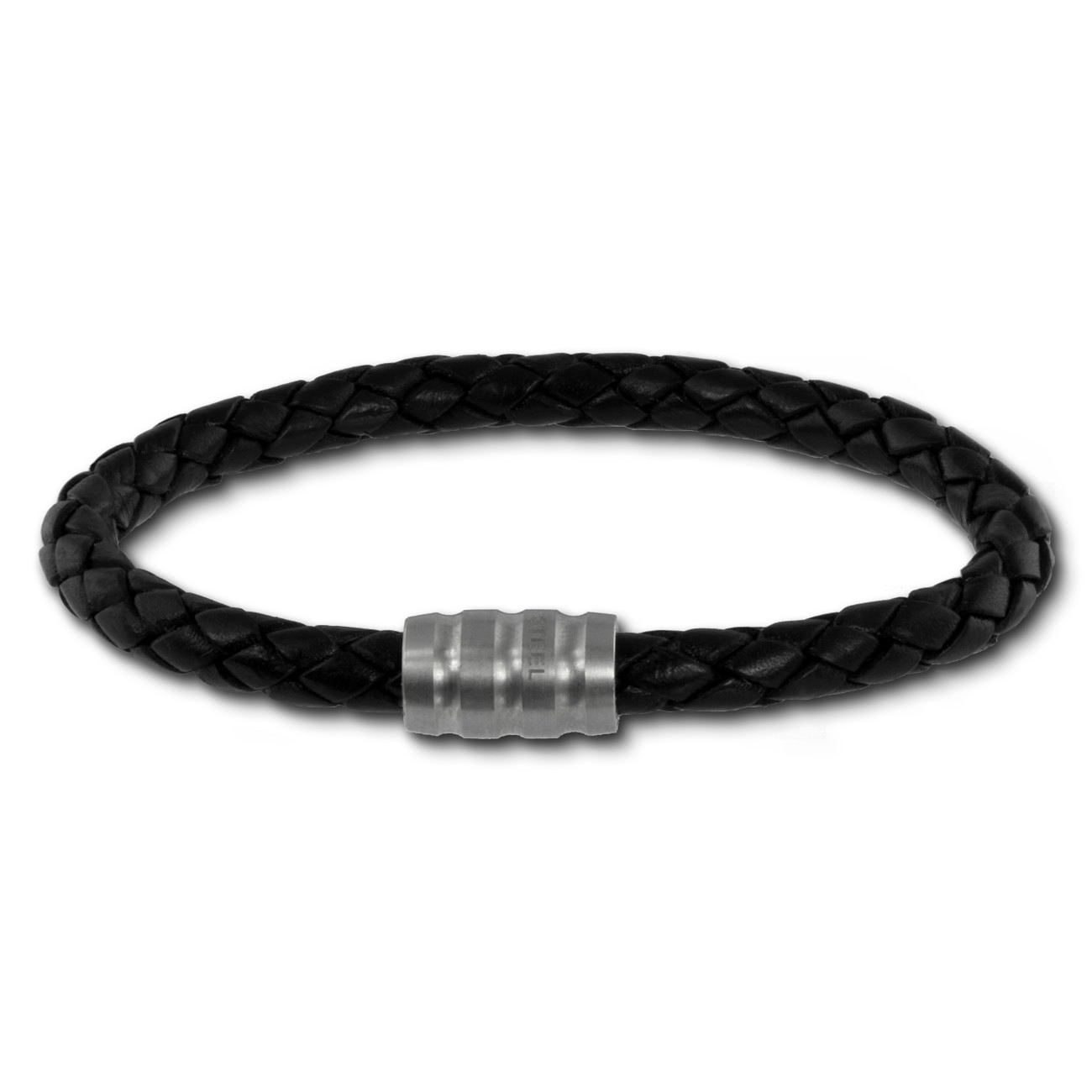 Ein geflochtenes Leder Armband in der Farbe schwarz mit Stainless Steel Magnet Verschluss. Die Breite des Leder Bandes ist 6mm und die Länge ist 20cm.