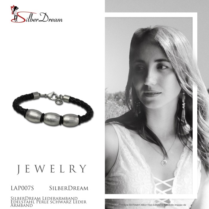 In der SilberDream Lederschmuck Kollektion finden Sie zahlreiche Schmuckstücke aus echtem Leder, die modisch aufeinander abgestimmt sind. Die Zusammenstellung ist stylisch, elegant und im derzeitigen Modetrend.