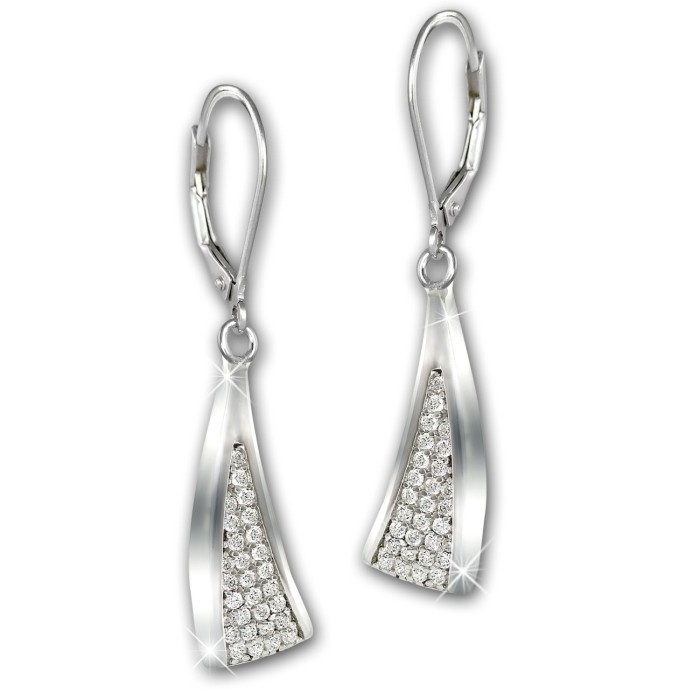 Ein Paar Ohrhänger - längliches Dreieck - aus unserer einzigartigen SilberDream Kollektion. Die Ohrringe sind poliert und mit vielen funkelnden, weißen Zirkonia besetzt. Die Ohrhänger sind aus feinstem, anlaufgeschütztem 925er Sterling Silber gefertigt.