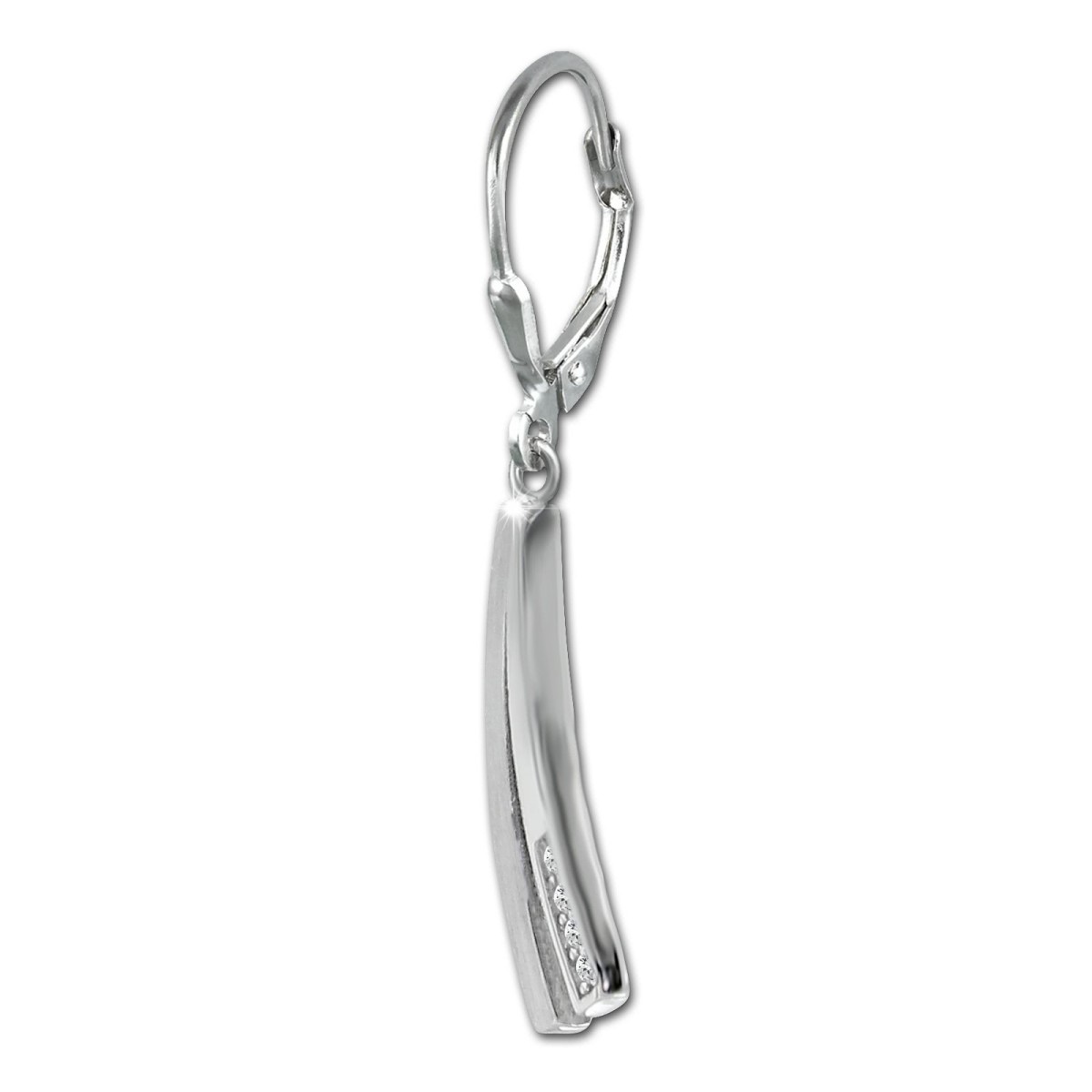 Ein Paar Ohrhänger -Fantasie- mit weißen Zirkonia, schicke Ohrringe aus unserer einzigartigen SilberDream Schmuck Kollektion aus allergenfreiem 925 Sterling Silber. Die geteilte Form ist hälftig mattiert und hälftig poliert und mit funkelnden Zirkonia verziert. Die Länge der Ohrhänger beträgt ca. 3,5cm.