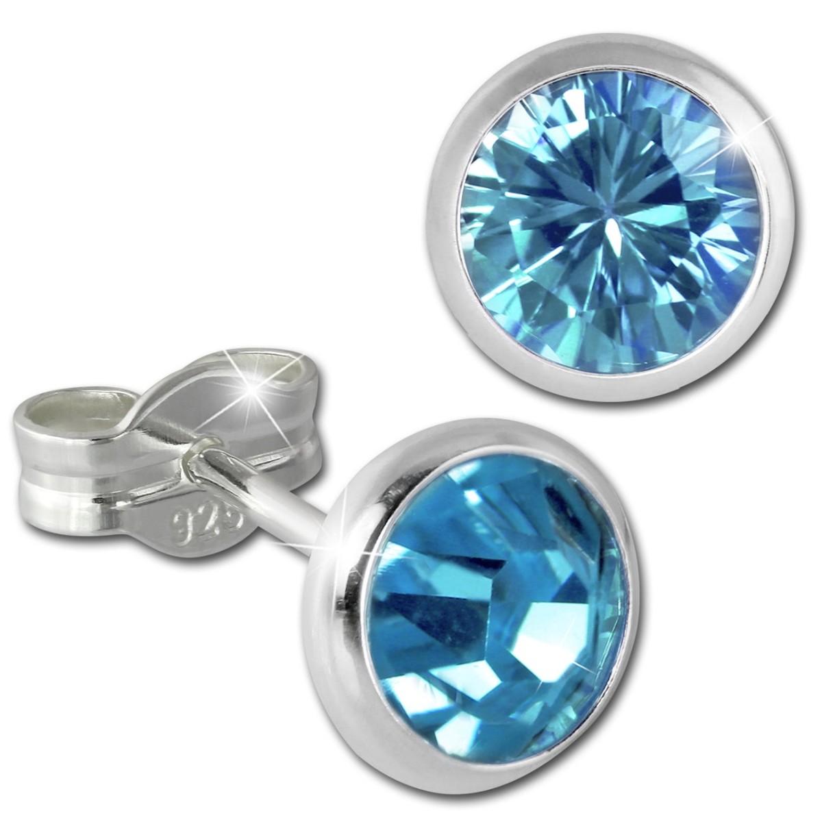 Ein Paar Ohrstecker Zirkonia hellblau, 6mm Ohrringe aus unserer einzigartigen SilberDream Kollektion aus anlaufgeschütztem 925 Sterling Silber.