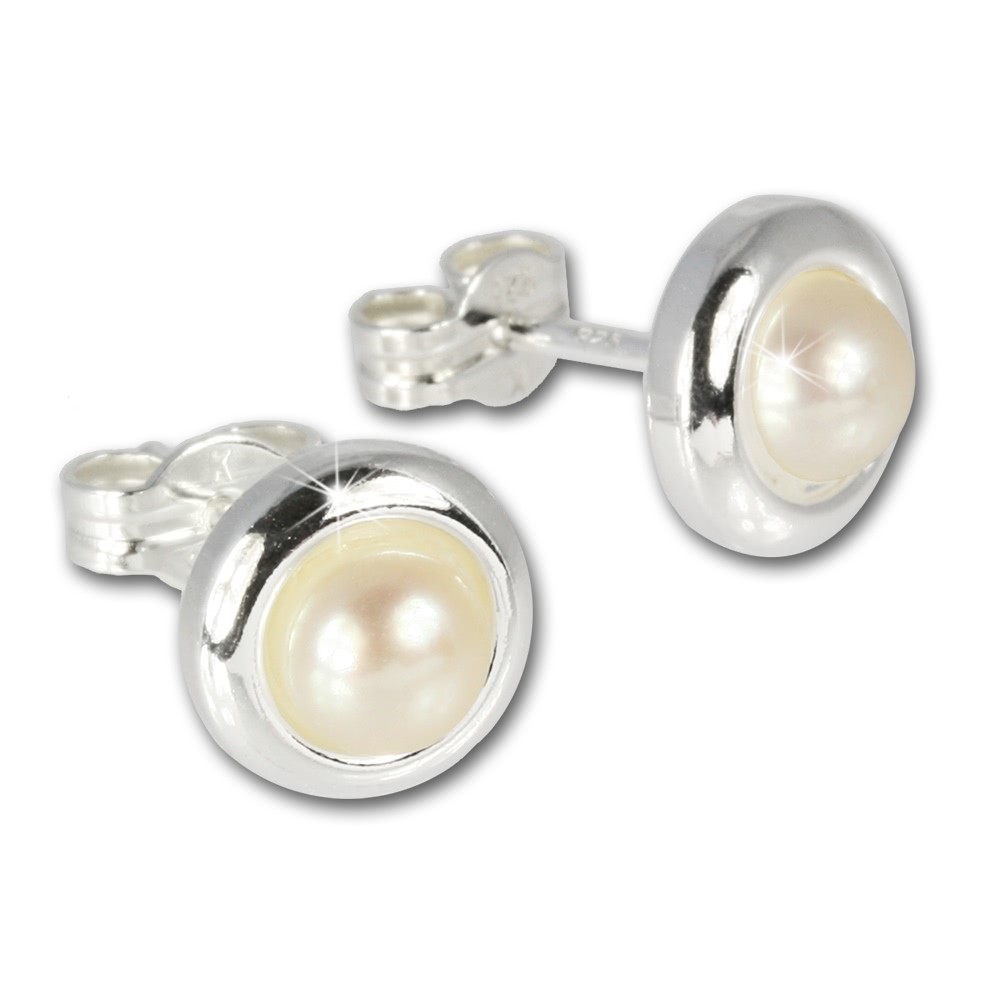 Ein Paar Ohrstecker Perle Ohrringe aus unserer einzigartigen SilberDream Kollektion aus anlaufgeschütztem 925 Sterling Silber.