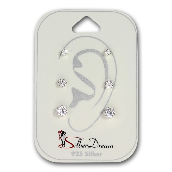 - Kurzbeschreibung: SilberDream Damenohrringe 3er Set Zirkonia weiß 925er Silber