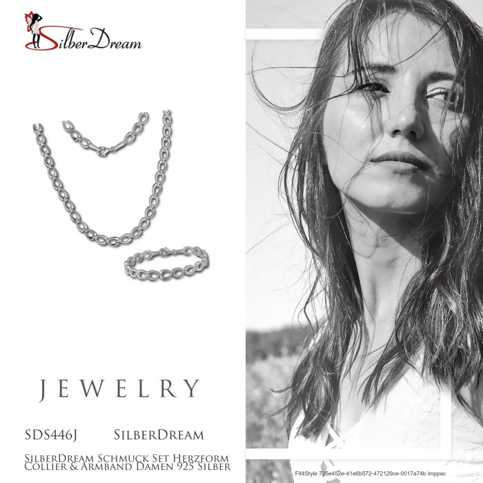 Ein trendiges Komplett Set - Collier & Armband Herzform - aus unserer einzigartigen SilberDream Kollektion. Dieses Schmuckset ist aus anlaufgeschütztem 925 Sterling Silber.