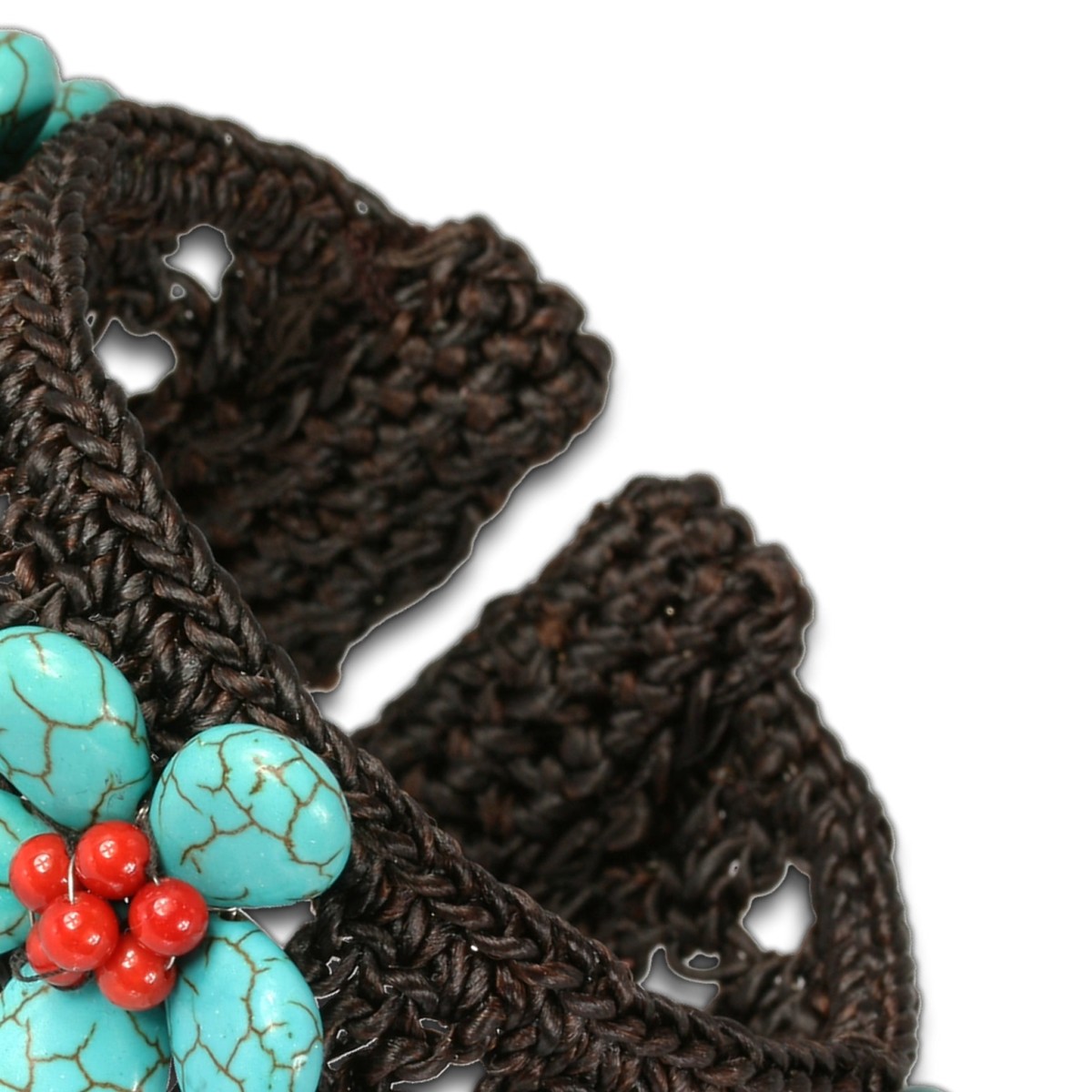Armband Blume - mit marmorierten türkis und roten Steinen hochwertig eingeflochten - , passend für alle Größen, aus unserer einzigartigen SilberDream Kollektion.